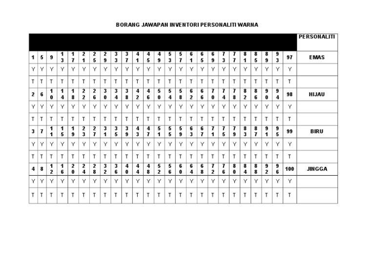 Borang Jawapan Inventori Person Ali Ti Warna Pdf